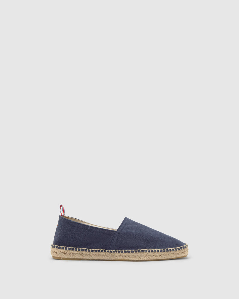 Iconic Pablo camping style espadrille in washed organic cotton and jute sole.