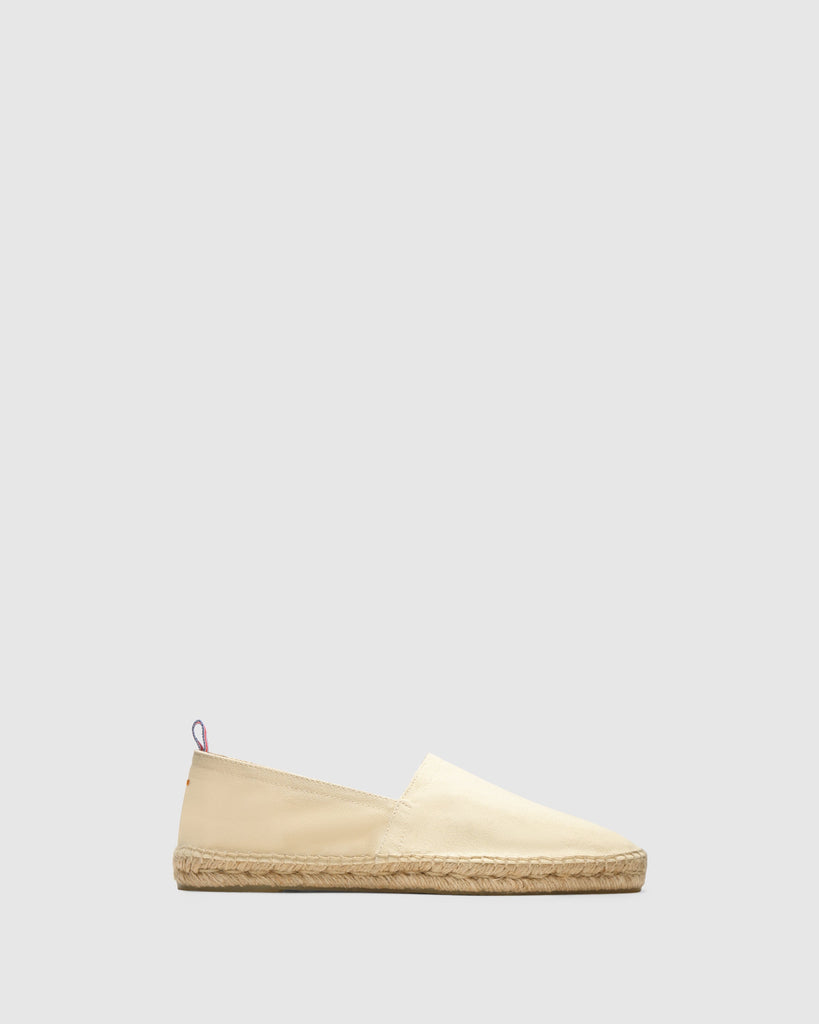 DETAILS THAT INSPIRE STYLE, SIMPLICITY AND CLASS. THE HEEL COUNTER IS A UNIQUE DETAIL IN THE MOST ICONIC MODELS. MADE WITH LINEN AND COTTON YARNS OF THE HIGHEST QUALITY, ON ANTIQUE LOOMS OF 1900 FULL OF HISTORY.