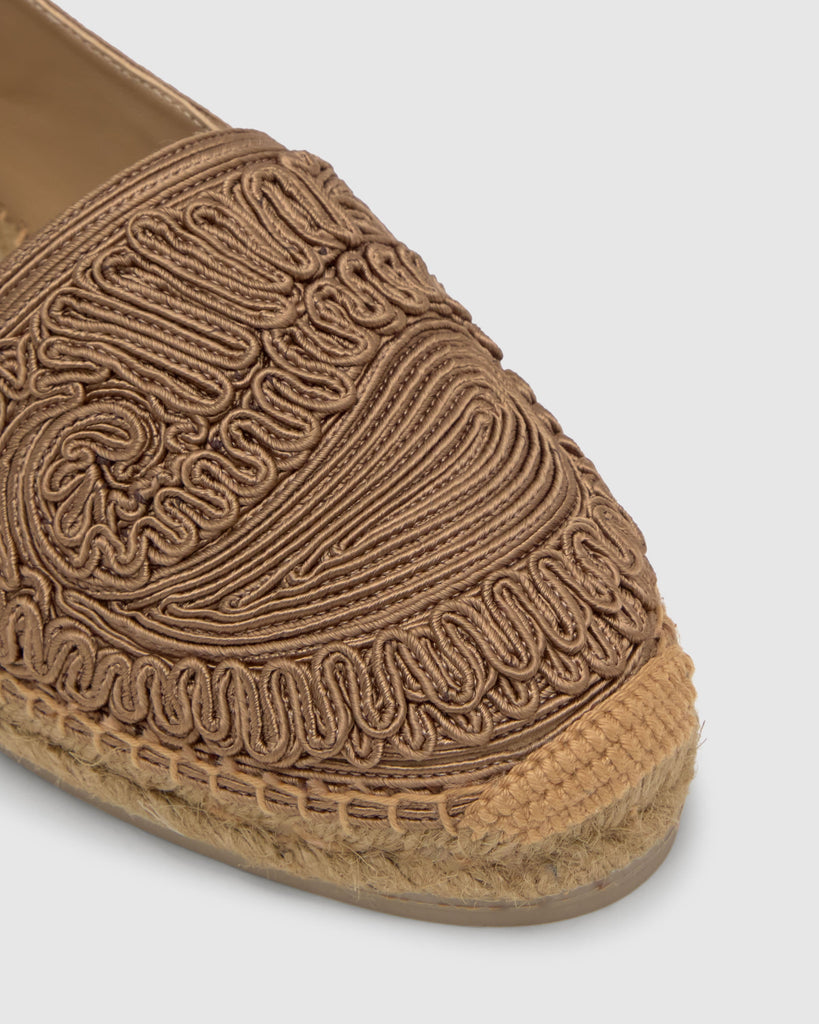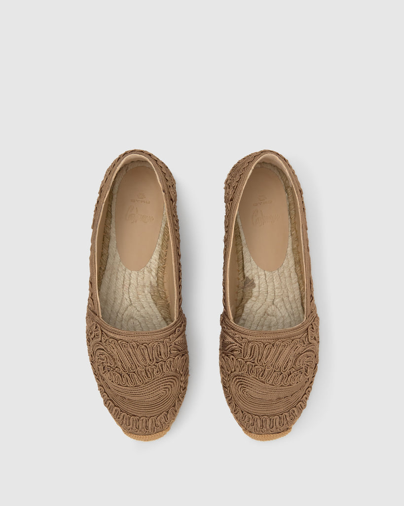 DETAILS THAT INSPIRE STYLE, SIMPLICITY AND CLASS. THE HEEL COUNTER IS A UNIQUE DETAIL IN THE MOST ICONIC MODELS. MADE WITH LINEN AND COTTON YARNS OF THE HIGHEST QUALITY, ON ANTIQUE LOOMS OF 1900 FULL OF HISTORY.