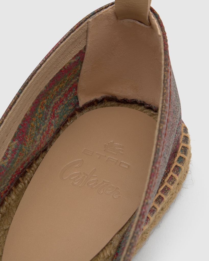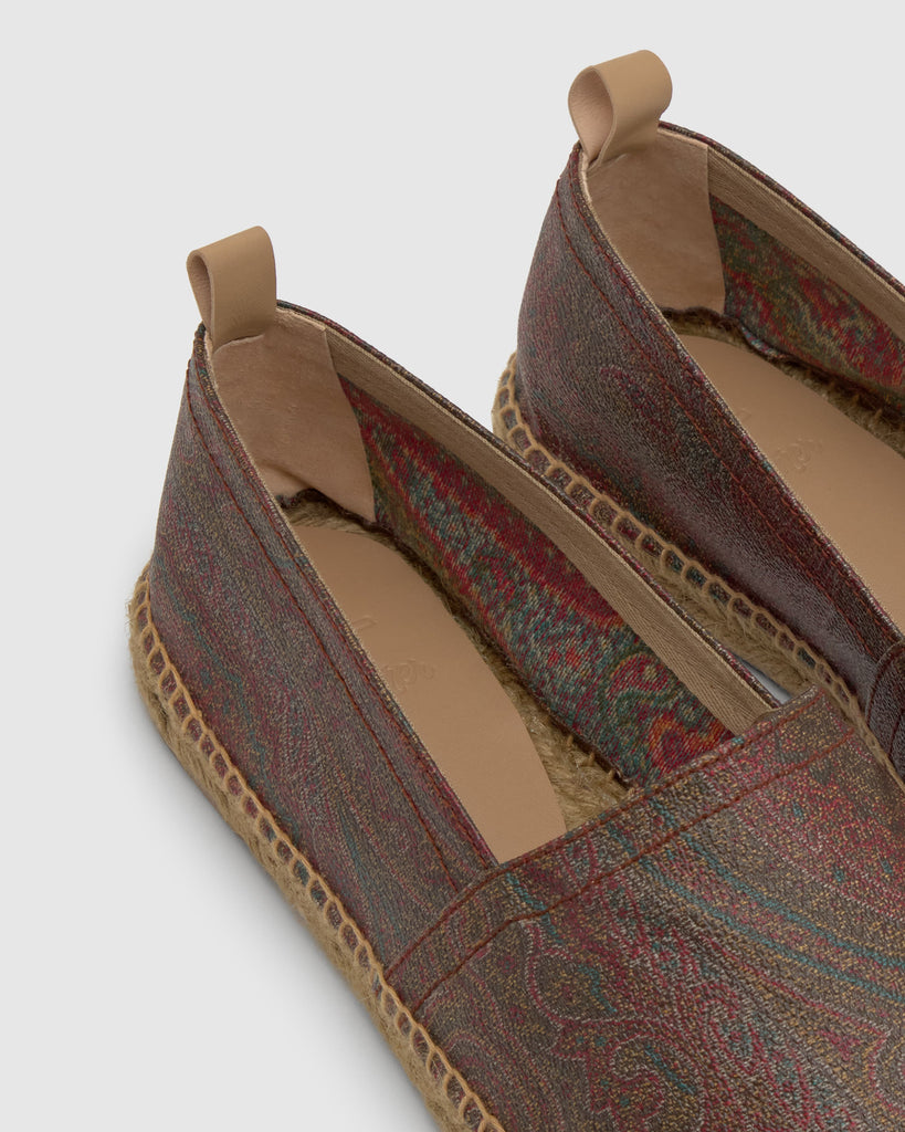 DETAILS THAT INSPIRE STYLE, SIMPLICITY AND CLASS. THE HEEL COUNTER IS A UNIQUE DETAIL IN THE MOST ICONIC MODELS. MADE WITH LINEN AND COTTON YARNS OF THE HIGHEST QUALITY, ON ANTIQUE LOOMS OF 1900 FULL OF HISTORY.