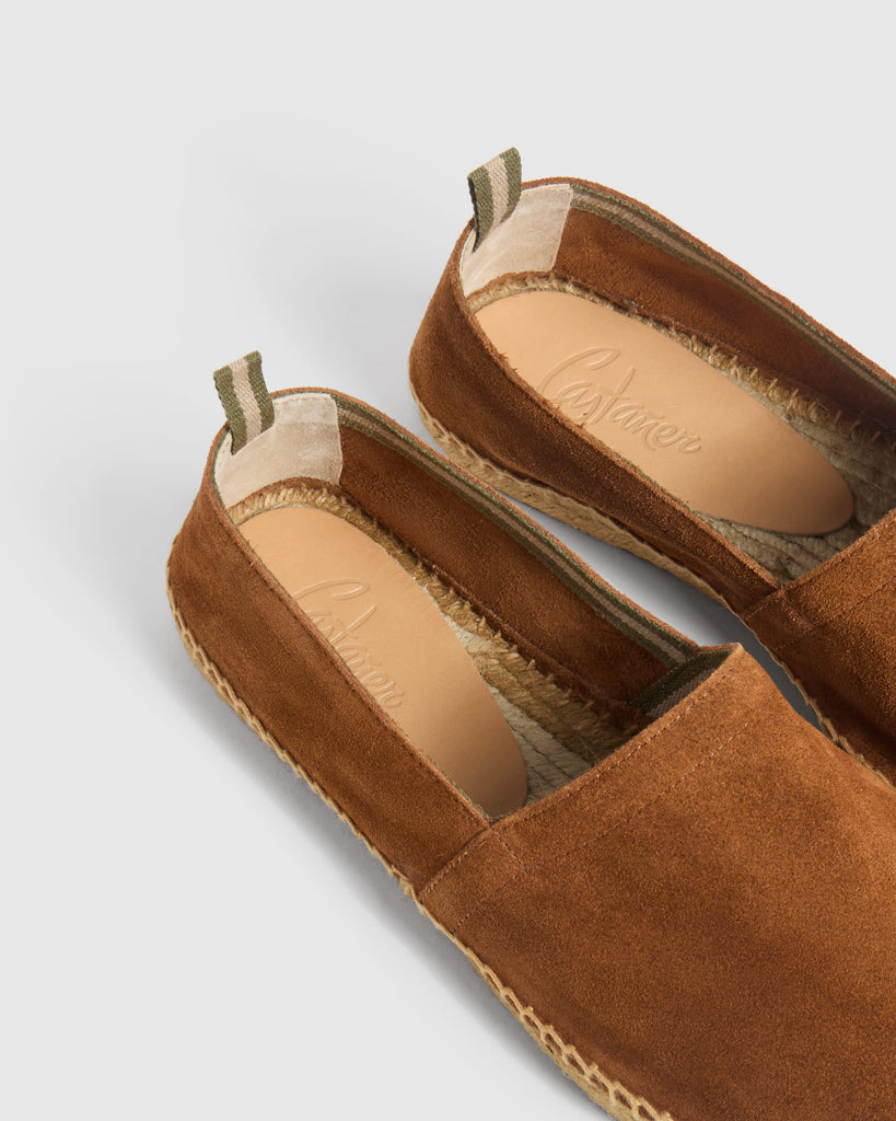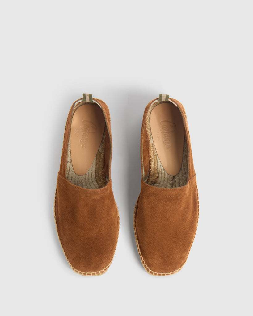 Iconic Pablo camping style espadrille in split leather and taupe jute sole.