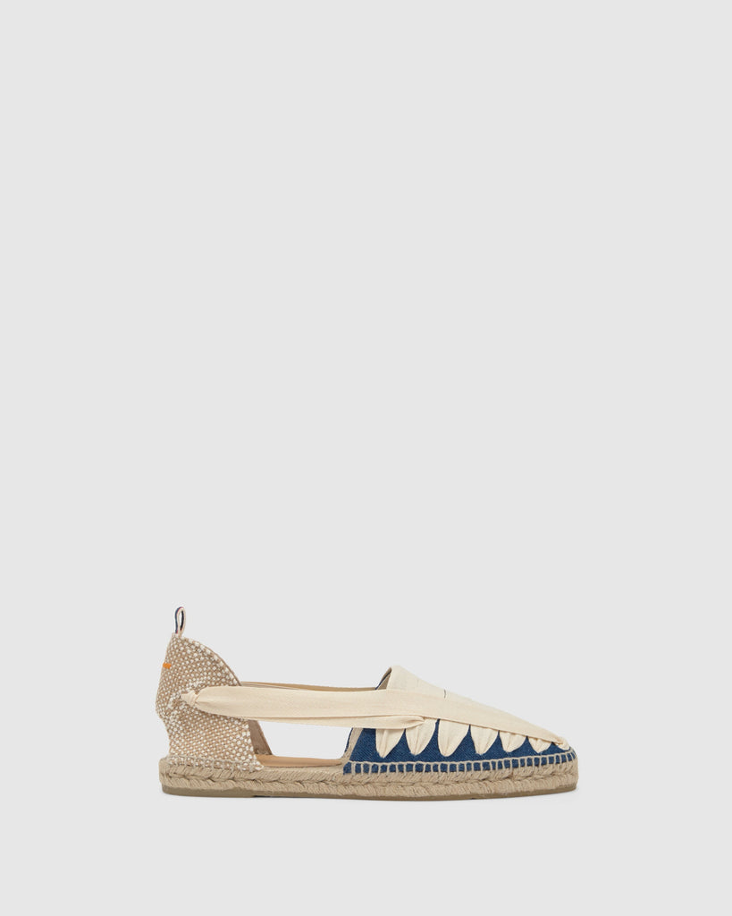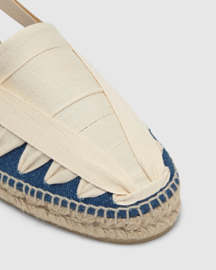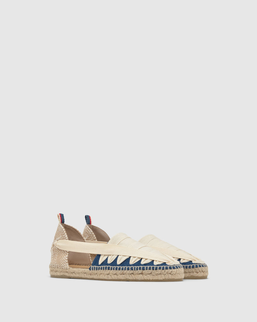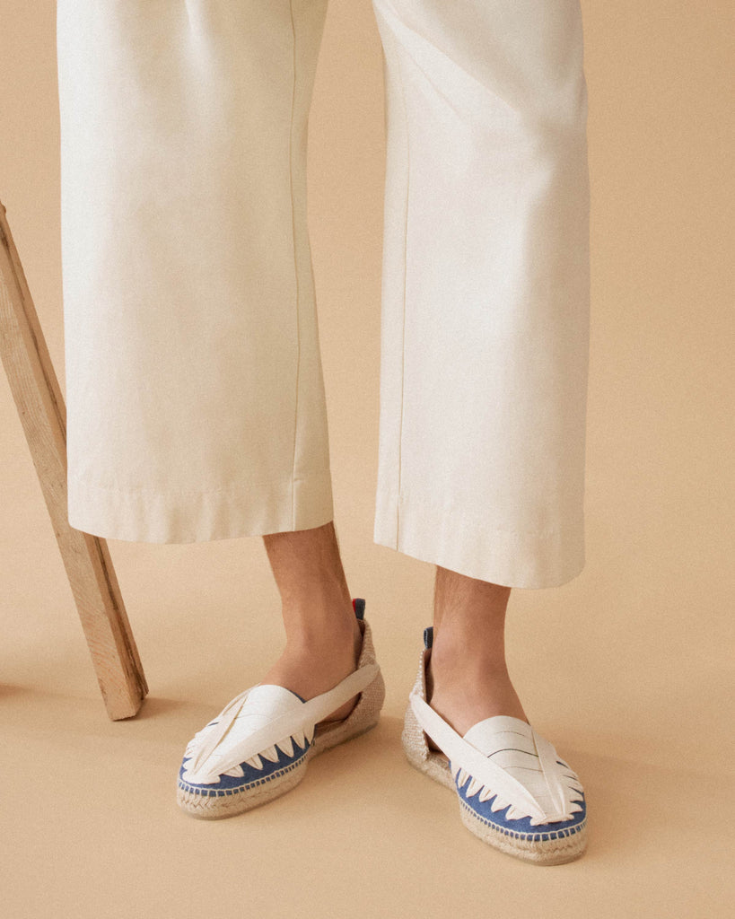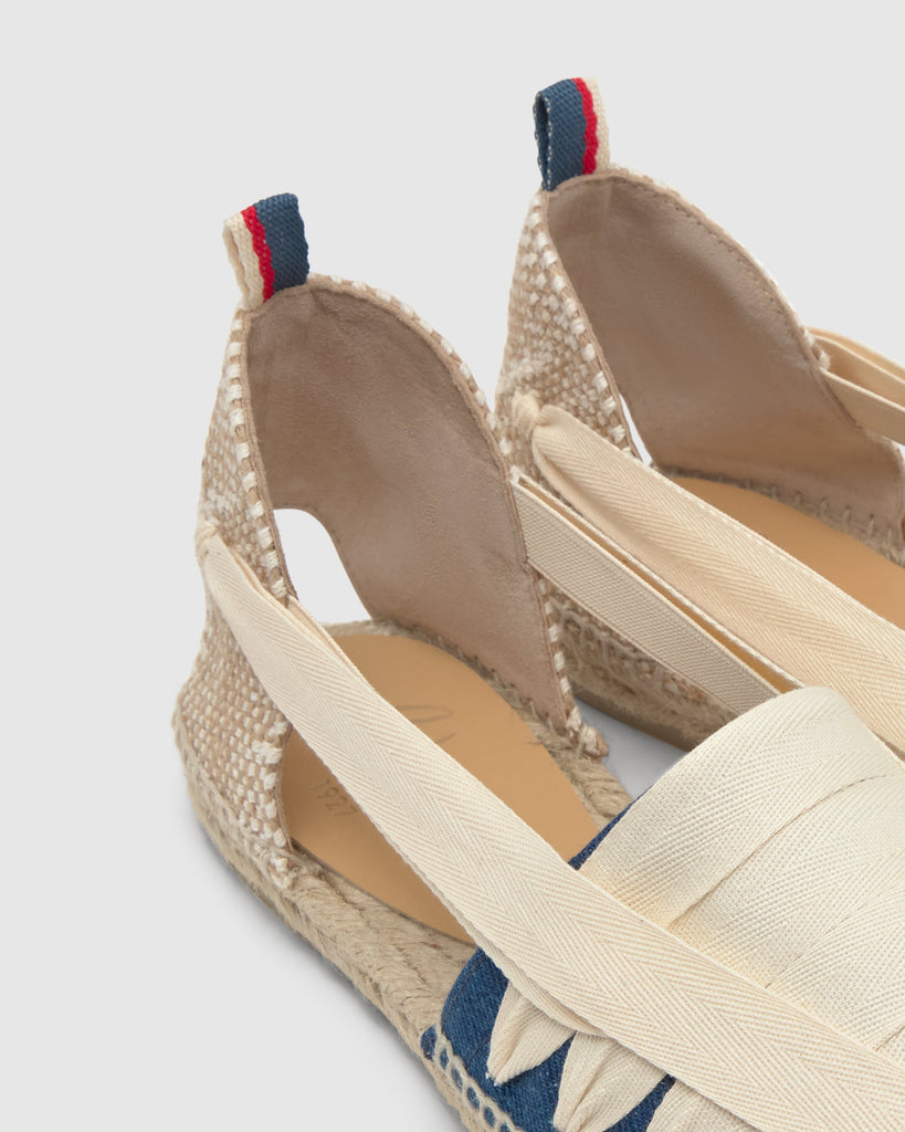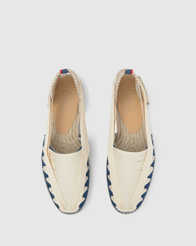 DETAILS THAT INSPIRE STYLE, SIMPLICITY AND CLASS. THE HEEL COUNTER IS A UNIQUE DETAIL IN THE MOST ICONIC MODELS. MADE WITH LINEN AND COTTON YARNS OF THE HIGHEST QUALITY, ON ANTIQUE LOOMS OF 1900 FULL OF HISTORY.