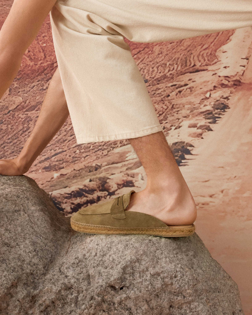DETAILS THAT INSPIRE STYLE, SIMPLICITY AND CLASS. THE HEEL COUNTER IS A UNIQUE DETAIL IN THE MOST ICONIC MODELS. MADE WITH LINEN AND COTTON YARNS OF THE HIGHEST QUALITY, ON ANTIQUE LOOMS OF 1900 FULL OF HISTORY.