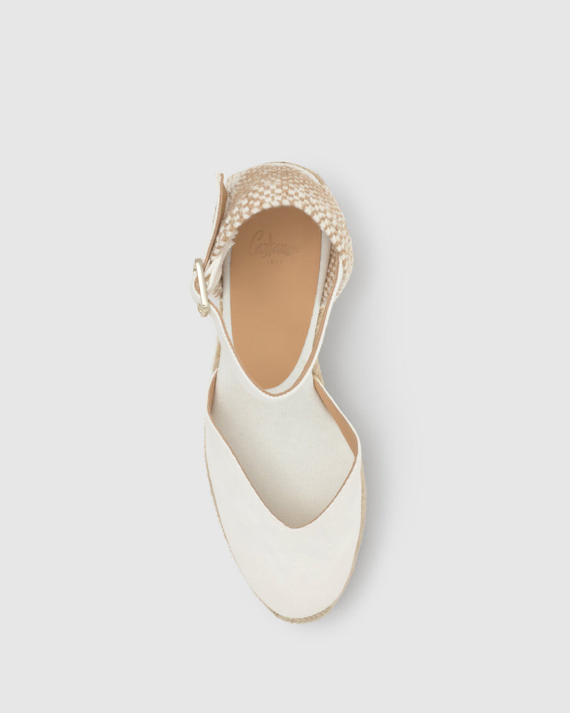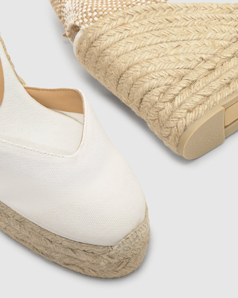 DETAILS THAT INSPIRE STYLE, SIMPLICITY AND CLASS. THE HEEL COUNTER IS A UNIQUE DETAIL IN THE MOST ICONIC MODELS. MADE WITH LINEN AND COTTON YARNS OF THE HIGHEST QUALITY, ON ANTIQUE LOOMS OF 1900 FULL OF HISTORY.