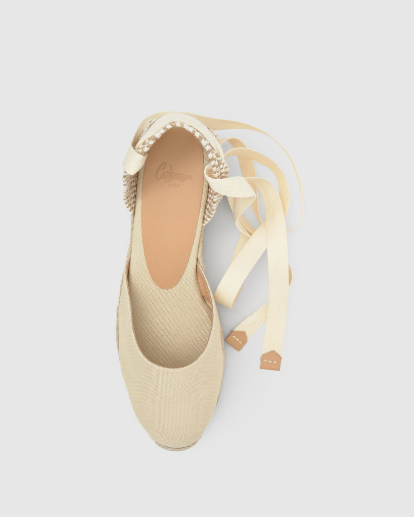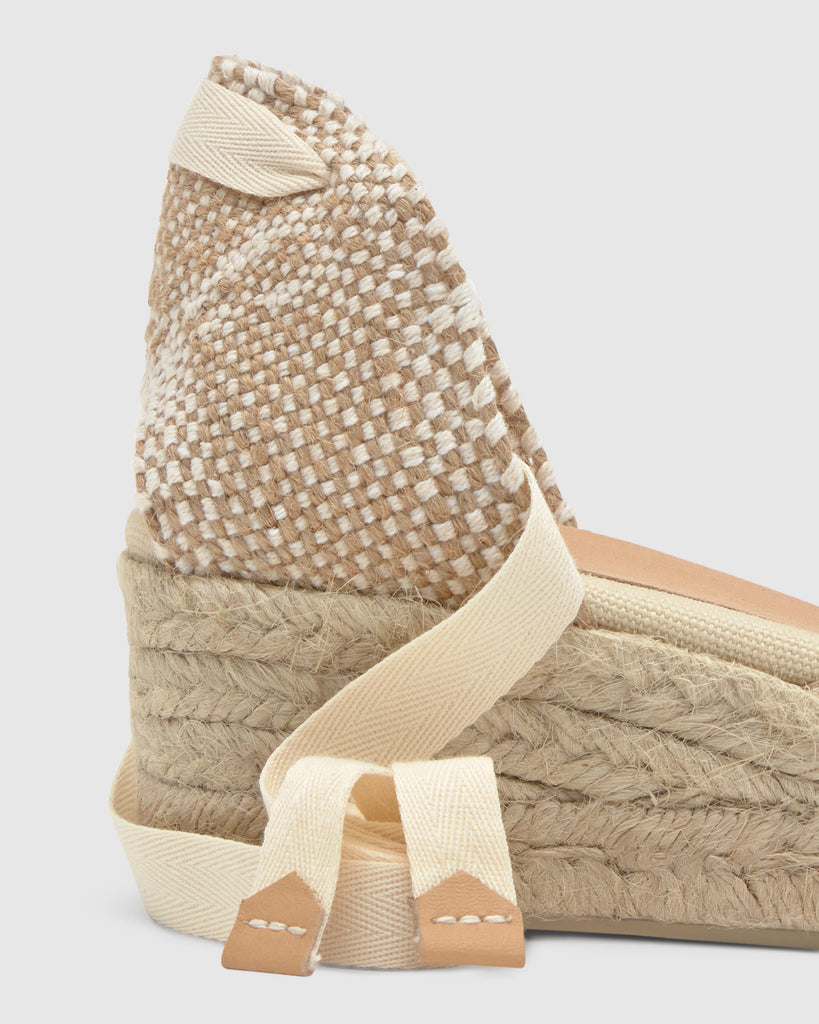 DETAILS THAT INSPIRE STYLE, SIMPLICITY AND CLASS. THE HEEL COUNTER IS A UNIQUE DETAIL IN THE MOST ICONIC MODELS. MADE WITH LINEN AND COTTON YARNS OF THE HIGHEST QUALITY, ON ANTIQUE LOOMS OF 1900 FULL OF HISTORY.