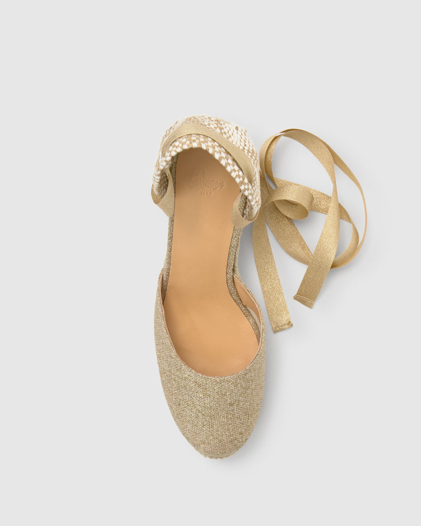 DETAILS THAT INSPIRE STYLE, SIMPLICITY AND CLASS. THE HEEL COUNTER IS A UNIQUE DETAIL IN THE MOST ICONIC MODELS. MADE WITH LINEN AND COTTON YARNS OF THE HIGHEST QUALITY, ON ANTIQUE LOOMS OF 1900 FULL OF HISTORY.