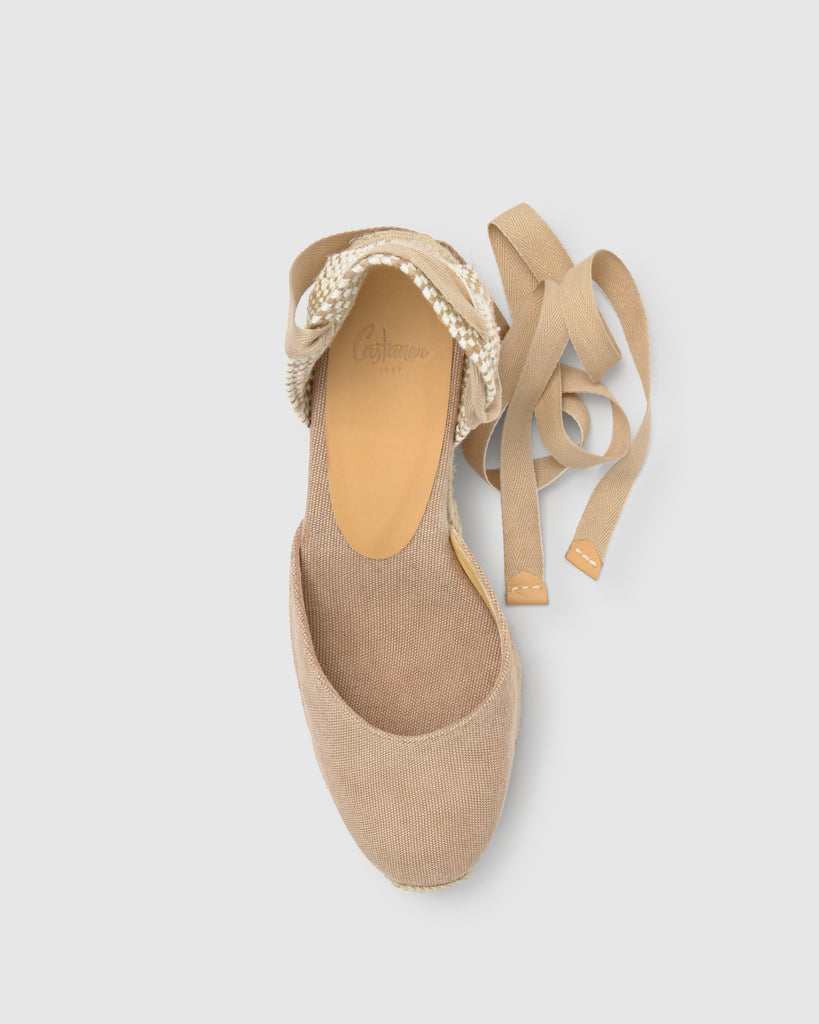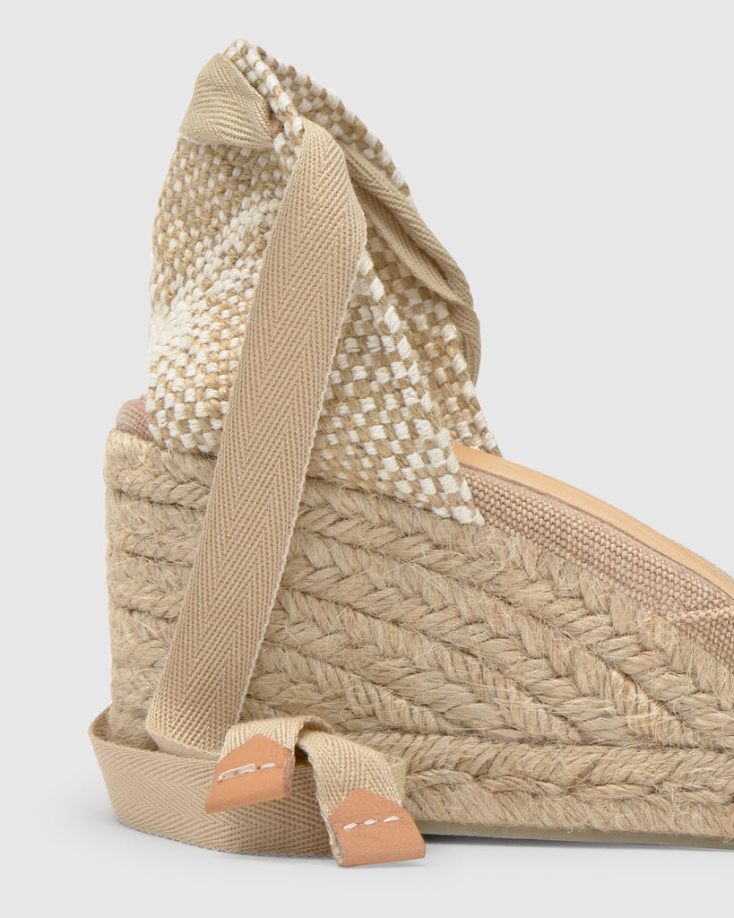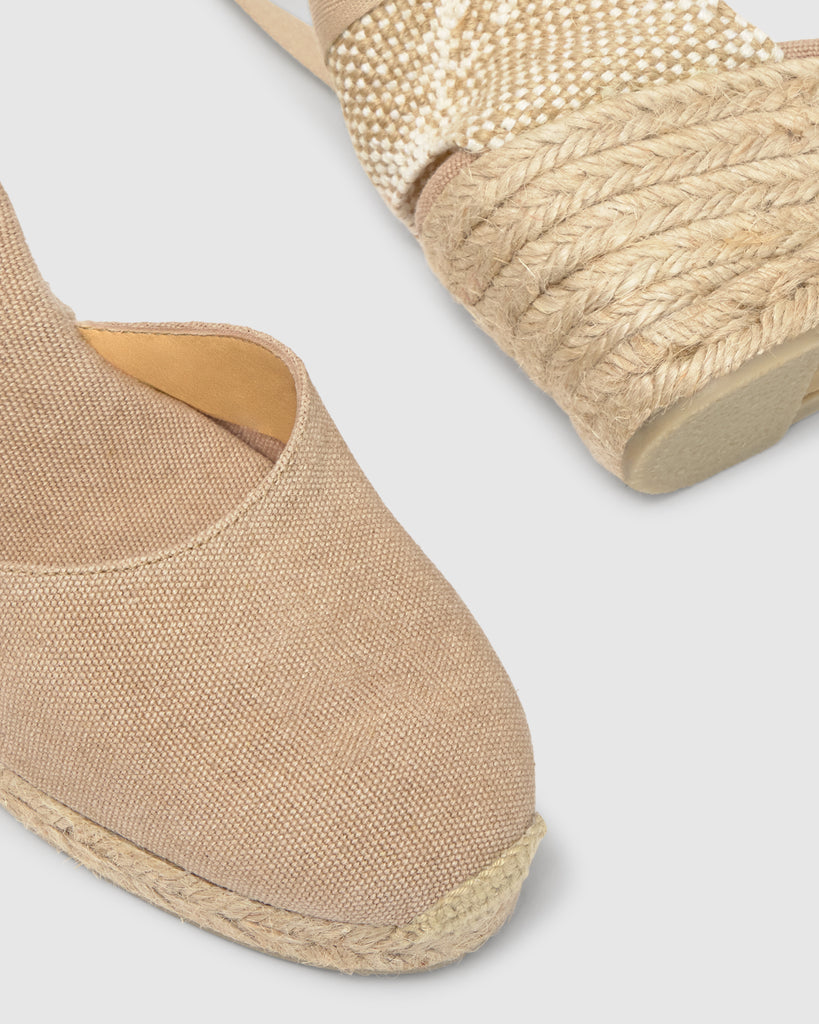 DETAILS THAT INSPIRE STYLE, SIMPLICITY AND CLASS. THE HEEL COUNTER IS A UNIQUE DETAIL IN THE MOST ICONIC MODELS. MADE WITH LINEN AND COTTON YARNS OF THE HIGHEST QUALITY, ON ANTIQUE LOOMS OF 1900 FULL OF HISTORY.