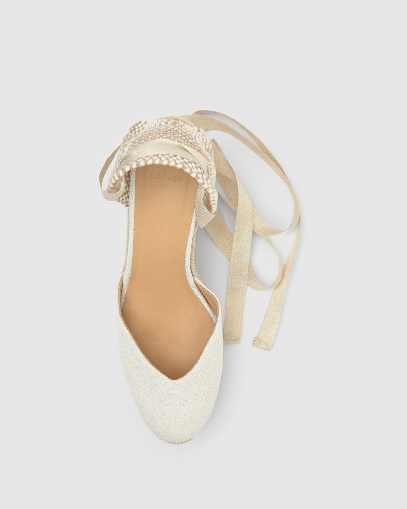 DETAILS THAT INSPIRE STYLE, SIMPLICITY AND CLASS. THE HEEL COUNTER IS A UNIQUE DETAIL IN THE MOST ICONIC MODELS. MADE WITH LINEN AND COTTON YARNS OF THE HIGHEST QUALITY, ON ANTIQUE LOOMS OF 1900 FULL OF HISTORY.